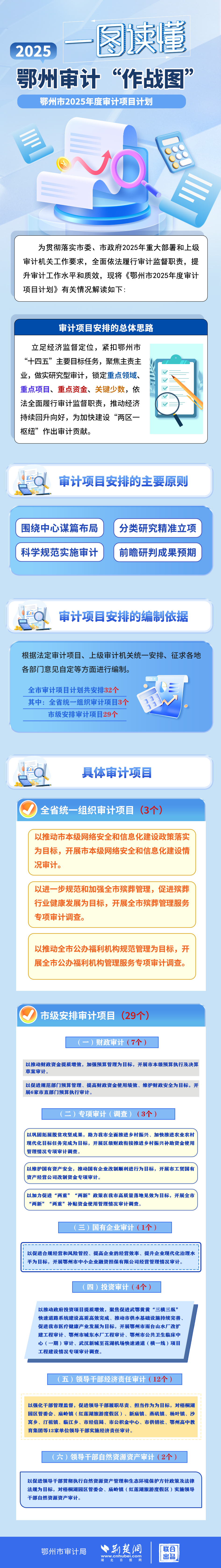近日,《鄂州市2025年度审计项目计划》公布,为该局2025年审计工作画下“作战图”!